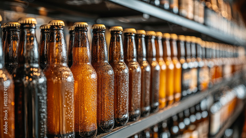 beer, shelving, bottle, glasses, shelf, alcohol, brewery, drink, beverage, refreshment, cold, craft, brew, bar, pub, party, celebration, festive, glass bottle, liquid, shopping