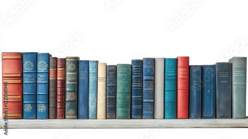 Row of Vintage Antique Books on Wooden Shelf Library Collection Literature Background