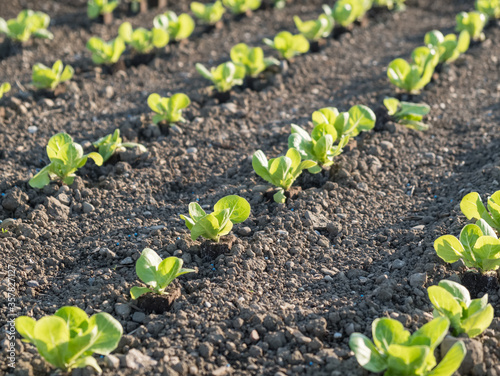 field, green, lettuce, farming, growing, agriculture, salad, spring, growth, gardening, green leaf, row, fresh, healthy, farm, organic, vegetable