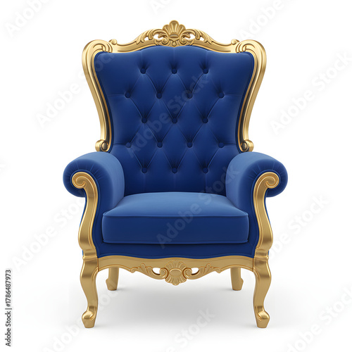 armchair, royals, blue, velvet, gold, furniture, luxury, elegant, classic, vintage, baroque, rococo, ornate, decoration, design, comfortable, seating, antique, expensive, cushion, isolated, white background, opulent, majestic, rich, texture, fabric, style, home, living room, comfort, queen, king, throne, exclusive, front view, render, three-dimensional, illustration, wealthy, success, power, status, lavish, chair, sofa, decor, luxurious, elegance