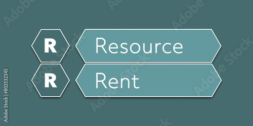 RR Resource rent An Acronym Abbreviation of a financial term. Illustration isolated on cyan blue green background