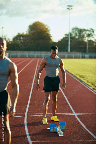 track, run, lane, fitness, fit, exercise, competition, brother, block, athlete, twin, training, track and field, sports equipment, sport, running, runner, race, outdoors, nature, material, light, black, man, male, person, people, adult, adult, 30s, grown-up