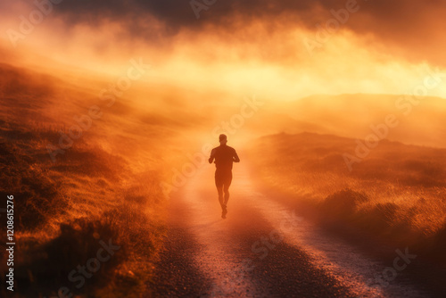 runner, dawn, trail, mist, solitude, nature, exercise, gold, sky, peaceful, scenery, fitness, morning, activity, landscape, athlete, relaxation, path, sunrise, exploration, determination, health, running, shoe, environment, freedom, serenity, ambience, light, calmness, journey, endurance, calm, sharpened, adventure, fresh, air, inspiration, jogging, lifestyle, silhouette, scenic, route, motivation, warm, colours, land, feature