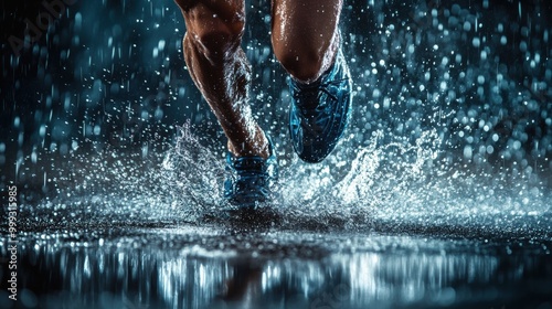 runner, rain, water, splash, exercise, sport, fitness, motion, night, street, city, athletic, shoe, droplet, dynamic, energy, determination, health, activity, challenge, physical exercise, lifestyle, nature, photo, speed, movement, adventure, endurance, ambience, atmosphere, lighting, water droplets, pavement, action, cardio, fun, rainstorm, performance, athlete, running shoe, wet, tire, rythm, environment, night scene