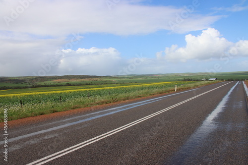 rural scene, western australia, road, asphalt, sky, blue, cloud, rural, farming, agriculture, travel, tour tourism, australia, crop, country, field, grass, green, view, scene, scenic, horizon, building