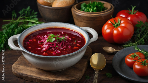 food, soup, meat, dinner, traditional, lunch, russian, cookery, dish, vegetable, bowl, meal, healthy, background, cooking, ukrainian, red, homemade, kitchen, hot, menu, beet, cabbage, beetroot, cream, green, epicure, garlic, table, national, wooden, rustic, eatery, russia, beef, delicious, sour, ukraine, potato, plate, sour cream, bread, closeup, parsley, white, tasty