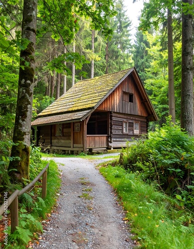 Rustic cabin nestled in a forest