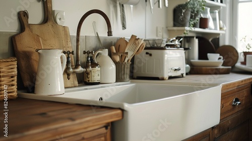 rustic, farmhouse, sink, vintage, kitchen, close, large, expose, front, panel, wall, shabby, shelve, old, harvest, antique, signs, handcraft, earth, paint, upgrade, stylish, wood, basin, focal, detail, table, design, bench, room, highlight, retro, dine, rug, live, light, piece, country, quilt