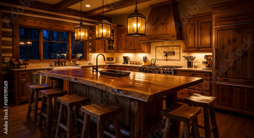 kitchen, cosy, wood, rustic, interior, design, home, cabin, counter, architecture, stool, warm, lighting, bar, island, wooden, table, furniture, house, luxury, elegant, decor, cooking, eating, traditional, modern, lamp, ambience, space, detail, bungalow, dining, living, comfortable, evening, style, domestic, illuminated, natural, hardwood, country, inviting