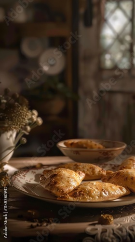 food, pastry, baked, dessert, gold, brown, rustic, kitchen, table, plate, bowl, sauce, delicious, homemade, warm, comfort, autumn, winter, cosy, sweet, savoury, crispy, flaky, crunchy, meal, treat, snack, dinner, lunch, eat, taste, aroma, smell, light, shadow, vintage, antique, background, still, life, photo, image, picture, appetising, tempting, irresistable