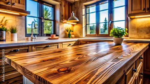 Rustic Kitchen Wooden Countertop - High-Resolution Stock Photo
