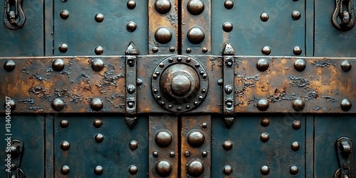 metal, door, gate, rustic, texture, aged, antique, old, iron, steel, rivet, bolt, detail, ornate, design, craftsmanship, background, pattern, surface, material, closeup, macro, photo, image, picture, art, aesthetic, grunge, vintage, weathered, brown, blue, copper, dark, heavy, strong, secure, entrance, building, architecture, history