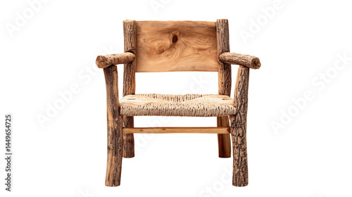 Rustic wooden armchair with natural texture on transparent png background. Ideal for farmhouse, eco-friendly, or rustic interior design projects. High-resolution furniture image.
