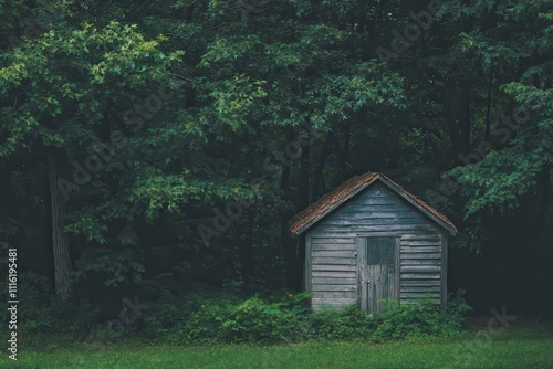 Rustic Wooden Cabin Surrounded by Lush Forest