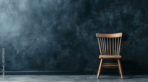 Rustic wooden chair in a cozy minimalist interior with dark grey walls and soft shadows providing a simple classic design element with copy space