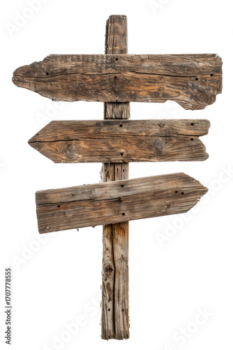 Rustic wooden signpost with blank arrows