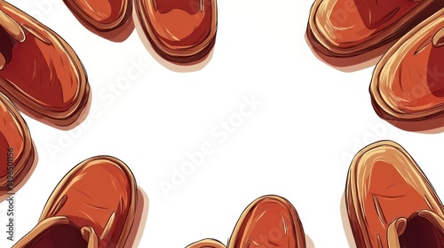 Rusty brown footwear arranged in a circle