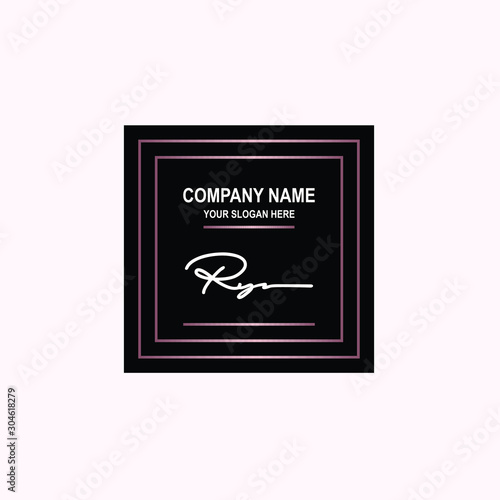 RY Initial signature logo is white, with a dark pink grid gradation line. with a black square background