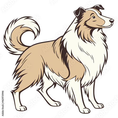 dog, collie, shepherd, animal, canino, pet, mammal, domestic, breed, purebred, portrait, standing, side, view, profile, drawing, art, graphic, design, cute, friendly, loyal, intelligent, beautiful, elegant, long, haired, sable