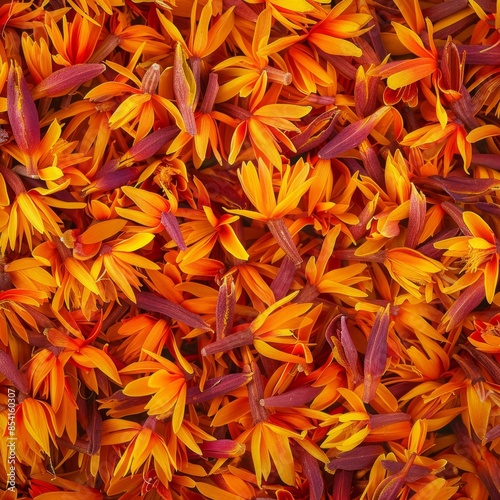 Saffron texture background, crocus sativus flowers pattern, dry herbal petals banner, aromatic herbs