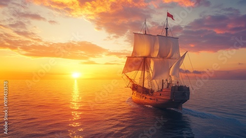 ship, sailing, sunset, sea, ocean, water, sky, cloud, gold, horizon, sun, boat, voyage, travel, adventure, marin, nautical, sail, mast, rudder, wave, calm, peaceful, serene, twilight, evening, nature, photo, landscape, beauty, freedom, hope, dream, inspiration, romantic, old, historical, vintage, classic, art, sailboat, pirate, yacht, vessel, tall, cruise, schooner, sunrise