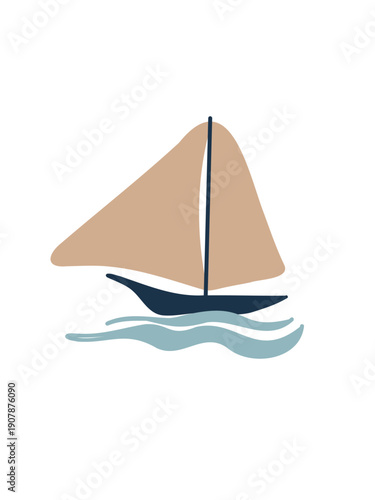 sailing ship moving gracefully on white background