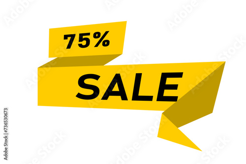 Sale - yellow folded paper ribbon banner with black label. E-shop or retail discounts promotion. Solid vector illustration.