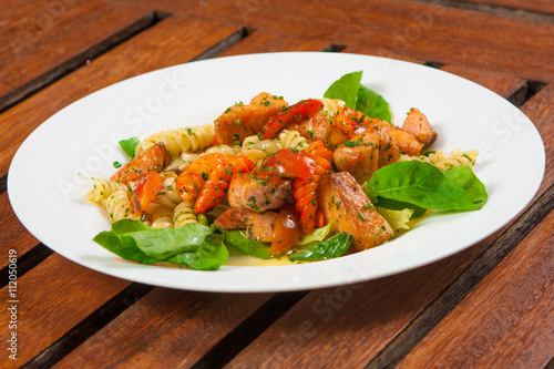 fusilli, pasta, salmon, baked, basil, close, closeup, colours, colourful, cooked, cookery, food, fresh, green, healthy, italian, meal, mediterranean, salad, shot, smoked, tuna, up, vertical, white