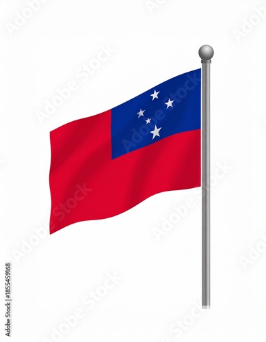 Samoas National Flag Waving Proudly on a Silver Flagpole Against White Background.