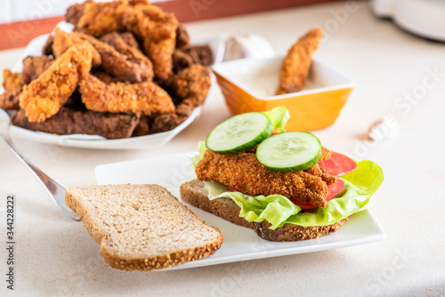 sandwich with homemade chicken strips