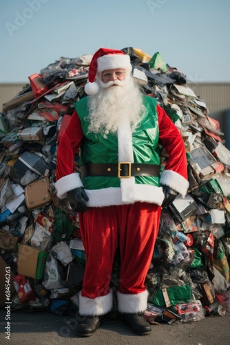 friendly, sad, environmentally, ecologic, message, environmental, junk, costume, recycling, reusing, christmas gift, social issue, hat, protection, christmas, clean, red, concept, ecological, environmental conservation, protective, celebration, ecology, merry, bio, gift, consumerism, christmas, claus, green, eco, environment, nature, santa, dump, container, rubbish, plastic, trash, garbage, santa, winter, new year, logotype, ai, generative