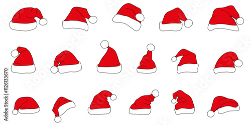 santa, hat, red, christmas, cap, clip art, card, cartoon, celebrate, celebration, claus, collection, costume, cute, cut-out, decoration, decorative, doodle, elf, fashion, festive, flat, funny, gift, graphic, greeting, hand-drawn, happy, holiday, icon, illustration, isolated, man, mask, merry, new, party, person, signs, simple, sticker, style, symbol, trendy, web, white, winter, christmas, year