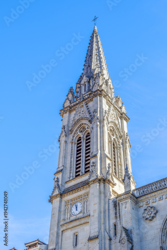 Santiago Cathedral Gothic Tower and Clock in Bilbao, Landmark in Casco Viejo, Spain