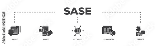 SASE icon infographic illustration concept with icon of security, password, network, framework and support icon live stroke and easy to edit