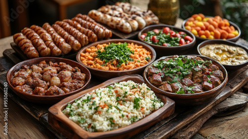 Saudi Cuisine: Traditional Saudi dishes and meals, such as kabsa or hummus, beautifully presented
