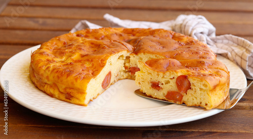 bake, bread, brunch, cake, cheese, dinner, food, meal, pie, sausage, savoury, spicey