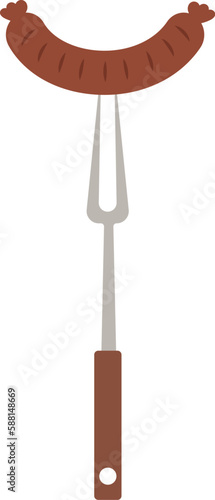 grill, bar-b-q, slice, grilled, lunch, snack, spicey, tasty, diet, sausage, food, sausage, wurst, fork, equipment, utensil, steel, bar-b-q, meat