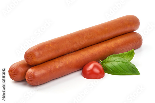 Sausages for frying, hunting sausages, close-up, isolated on white background