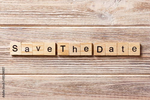Save the Date word written on wood block. Save the Date text on table, concept