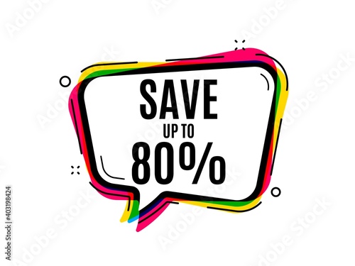 Save up to 80 percent. Speech bubble vector banner. Discount Sale offer price sign. Special offer symbol. Thought or dialogue speech balloon shape. Discount chat think bubble. Vector