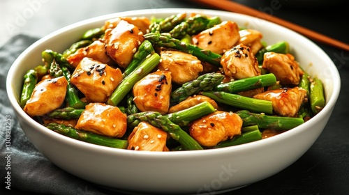 Savory bowl filled with delicious asparagus and tender chicken pieces creating a hearty and nutritious meal option