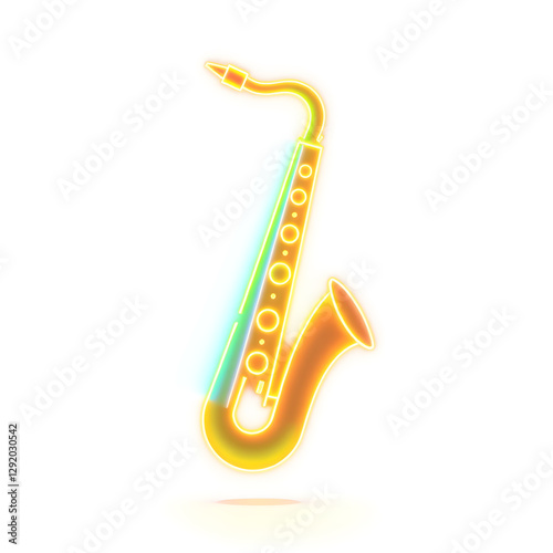 Saxophone holographic 3D icon. neon symbol vector illustration isolated on white background. Generative AI