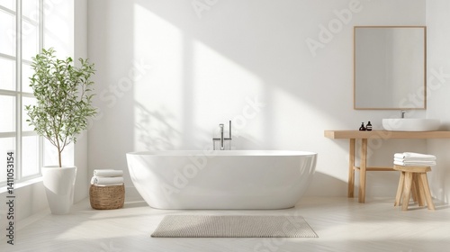 Scandinavian-style bathroom with simple fixtures, natural materials, and a bright, clean look.