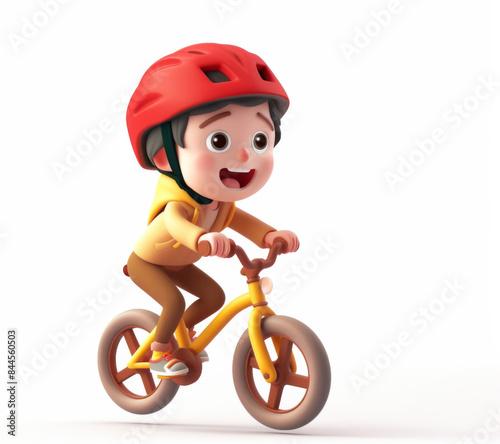 Scared boy wearing helmet on bicycle. Isolated cartoon 3d illustration on white background.