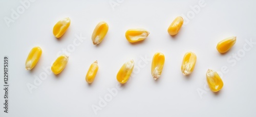 corn, kernel, seed, grain, agriculture, food, farming, yellow, harvest, plant, white, background, closeup, texture, organic, natural, healthy, diet, nourishment, ingredient, cooking, receipe, botany, maize, cereal, crop, rural, nature, produce, still life, studio, photo, image, template, design, element, illustration, vector, display, presentation