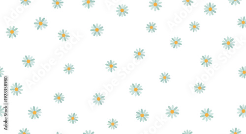 daisy, flower, floral, pattern, seamless pattern, scattered, small, delicate, light blue, yellow, white, background, nature, spring, summer, simple, minimalist, repeating, graphic, design, illustration, art, element, organic, bloom, garden, botanical, sweet, fresh, clean, decorative, texture, surface, wallpaper, fabric, textile, stationery, gift wrap, craft, cute, pretty, gentle, botany
