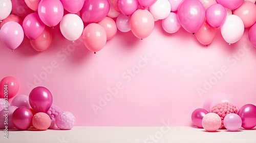 scattered, pink, background, studio, shot, illustration, colourful, balloon, frame, shade, visually, captivating, cheerful, scene, simplicity, composition, vibrant, colours, center, stage, different