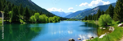 Scenic view of Haviland Lake with clear blue skies and lush greenery in Durango, Colorado, nature, Durango