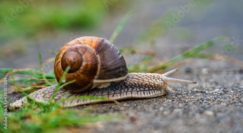 street, asphalt, grass, detail, slow, portrait, close-up view, slowness, snail, macro, creature, delay, symbol, illustration, calm