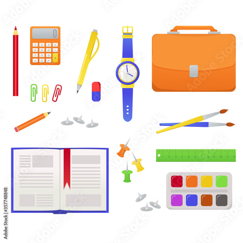 school, vector, set, book, education, illustration, crayons, design, first, pen, collection, clock, globe, stationery, computer, ruler, phone, art, icon, cartoon, graphic, paper, background, primary, rudiments, workplace, table, isolated, object, draw, learning, class, plasticine, calculating machine, protractor, bookmark, number, abacus, paper clip, compass, scissors, paint, brush, symbol, drawing, album, blackboard, note, thing